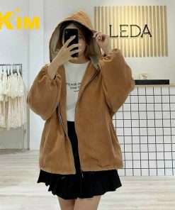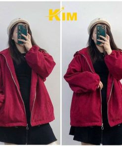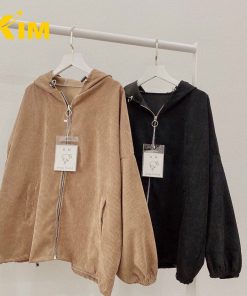 Tên sản phẩm: ÁO KHOÁC NHUNG TĂM FORM RỘNG DÂY KÉO – KIM