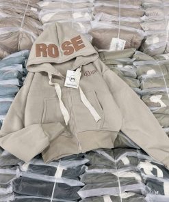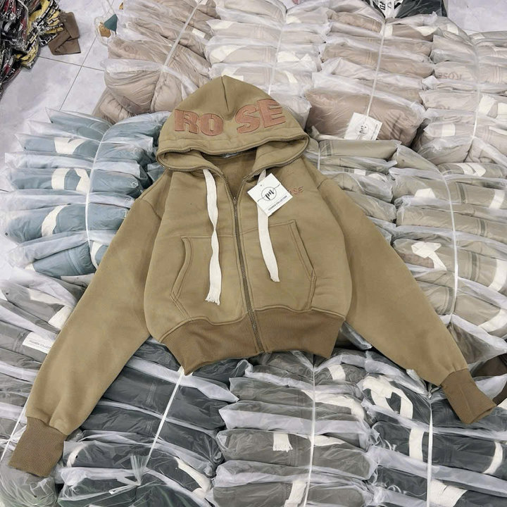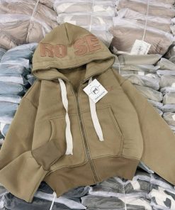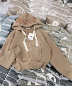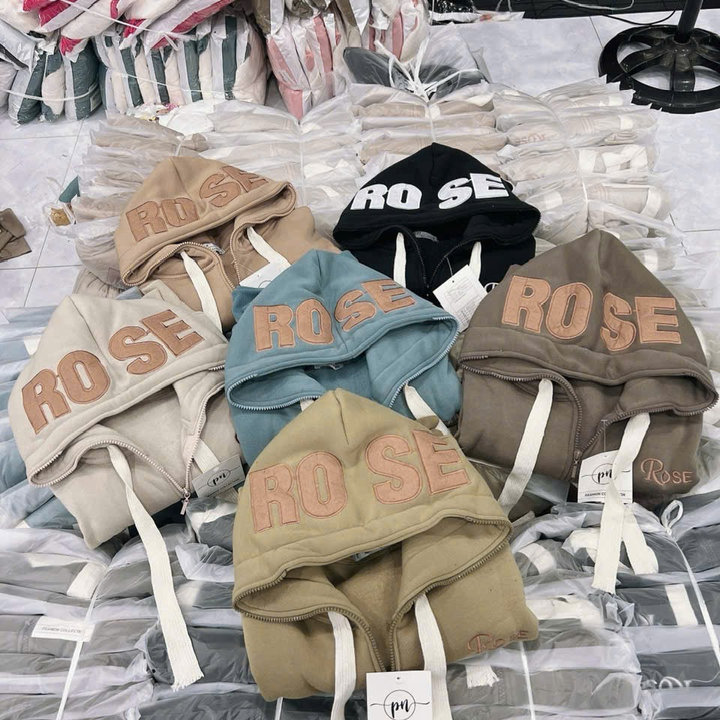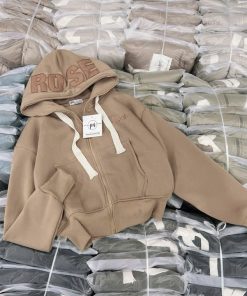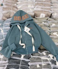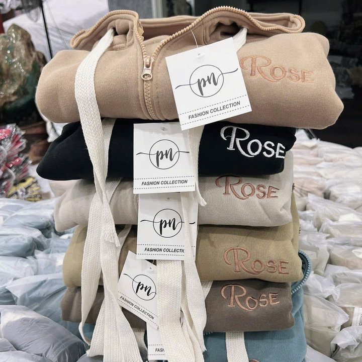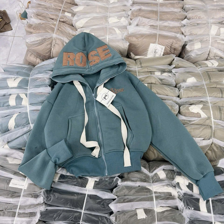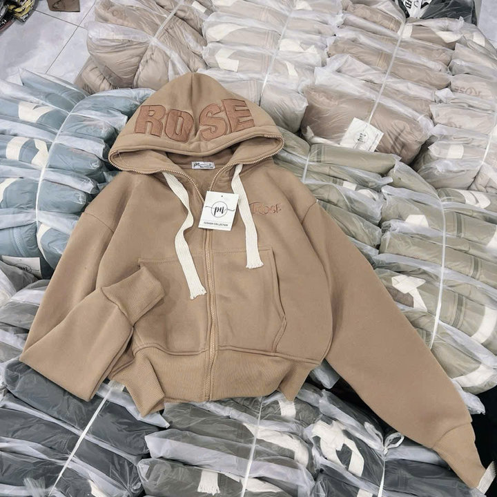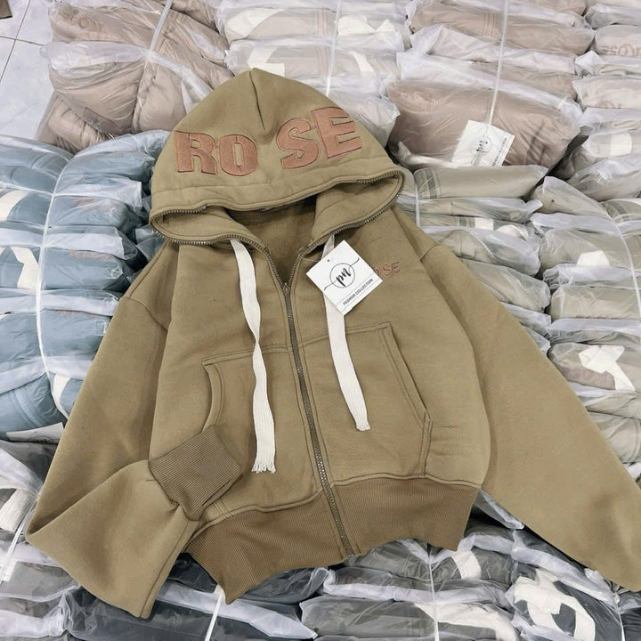 ÁO KHOÁC NỈ DÂY KÉO CHẤT NỈ THÊU CHỮ ROSE FORM RỘNG SIÊU DÀY CHỐNG NẮNG , TÚI XỎ NGÓN