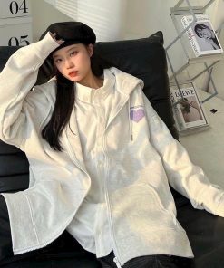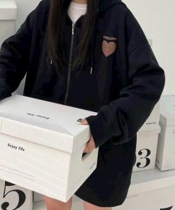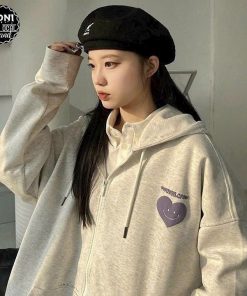 Áo Khoác Nỉ Bông Có In Hình Trái Tim Ở Áo Siêu Đáng Yêu Kèm Nón Đẹp Form Rộng Nam Nữ Cá Tính Hàng HOt Trend-HTM FASHION