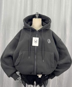 Kiểu dáng: Áo khoác zip full kéo khóa tiện lợi, có túi trước và mũ trùm đầu.