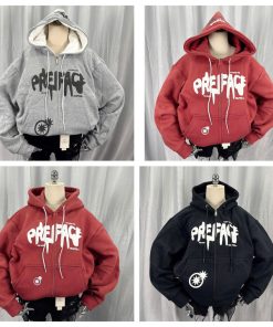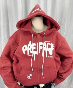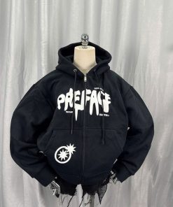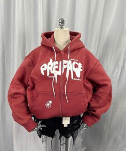 Áo khoác hoodie nỉ bông unisex in chữ "PREFACE" form rộng – Chất dày đẹp, phong cách Hàn Quốc cá tính