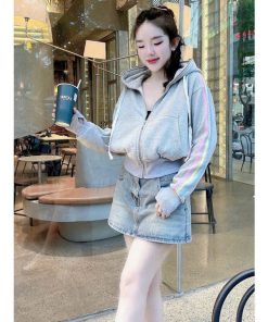 Phối với chân váy jean (như mẫu) – xinh chuẩn style Hàn.
