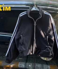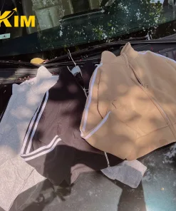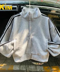 Tên sản phẩm: ÁO KHOÁC NỈ DÁNG LỬNG PHỐI SỌC TAY HOT TREND – KIM