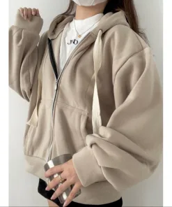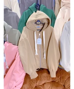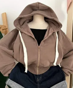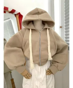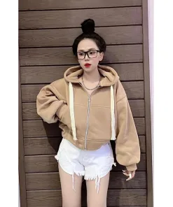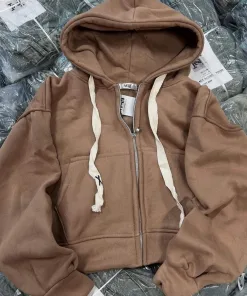 - Tên Sản phẩm: Áo khoác nỉ dáng ngắn croptop màu nâu nhạt