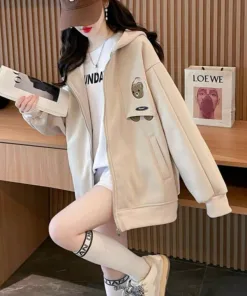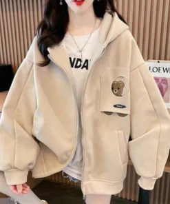 Tên sản phẩm: ÁO KHOÁC NỈ DÀY DẶN NỮ THÊU HÌNH GẤU PHỐI NẮP SIÊU XINH FROM RỘNG UT10