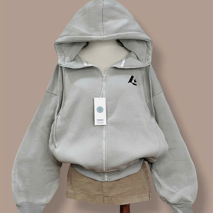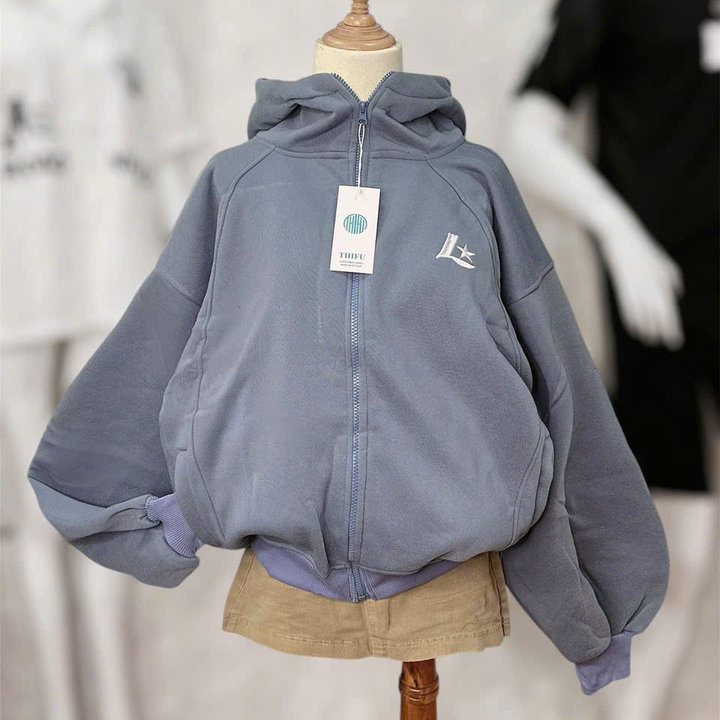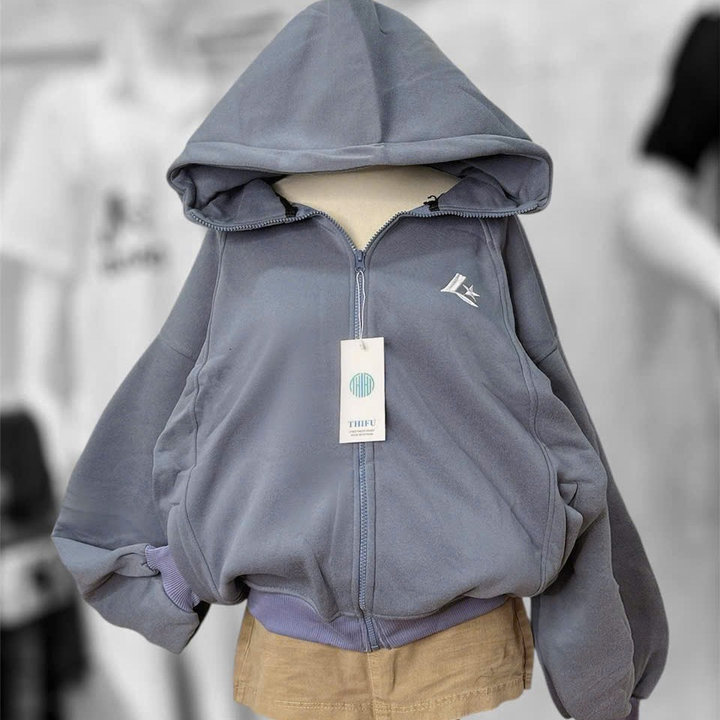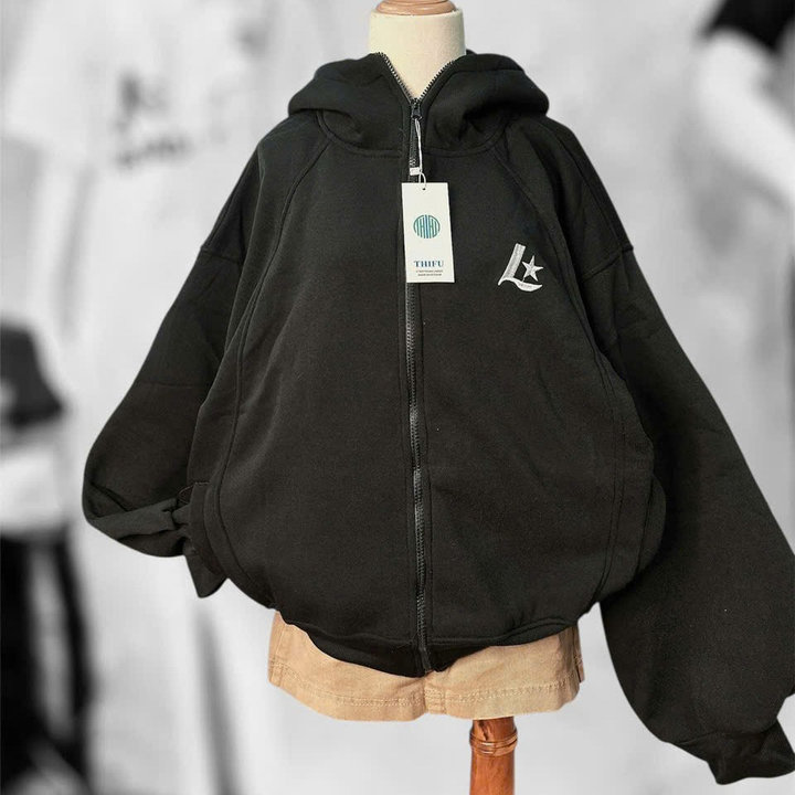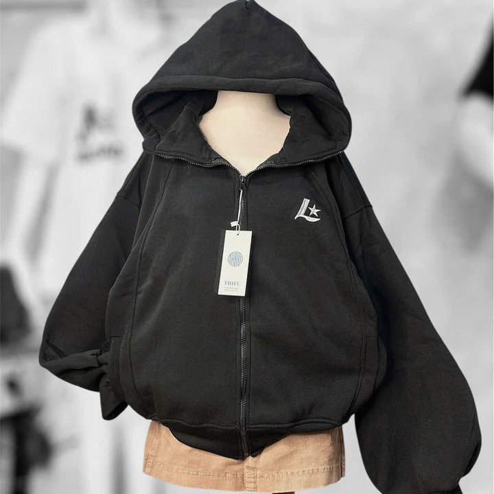 Tên sản phẩm: ÁO KHOÁC NỈ DÀY DẶN UNISEX ANM NỮ THÊU CHỮ L SAO FORM BOXY ĐẸP TP409 – GOLDEN DREAM