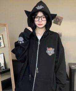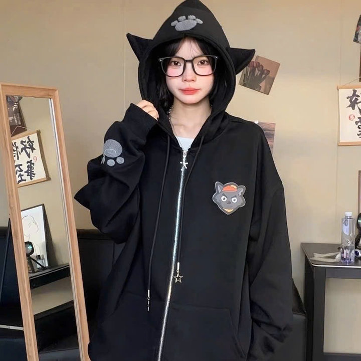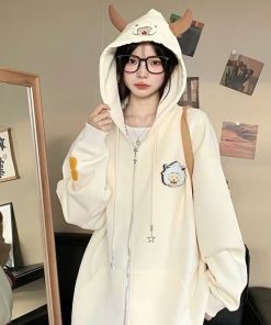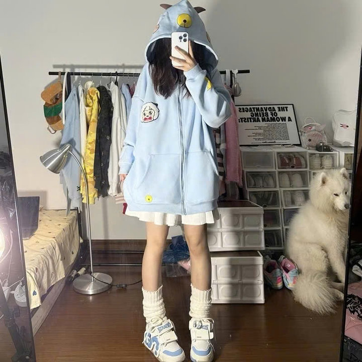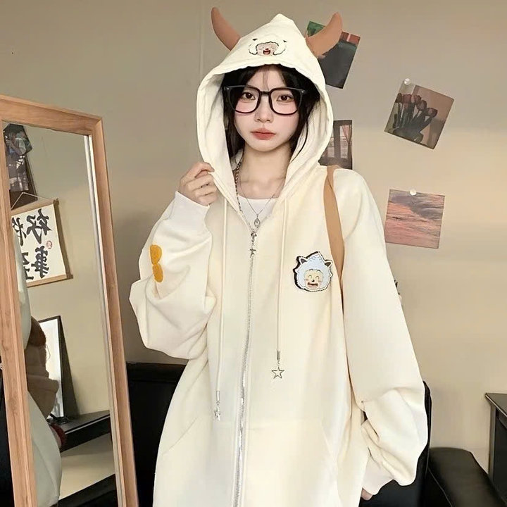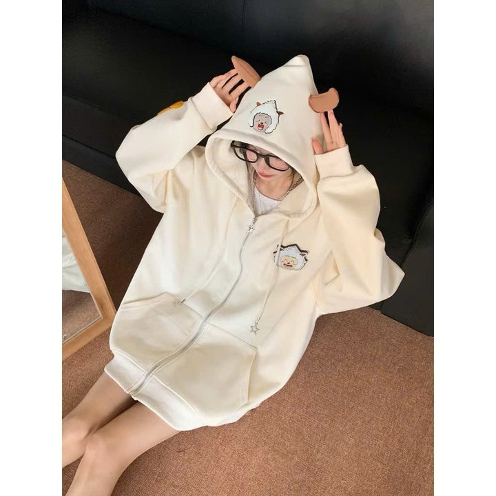Áo khoác Nỉ Dây kéo có nón thêu Cừu Tay Phồng unsiex mặc chống nắng siêu hot – TP736