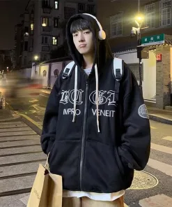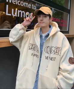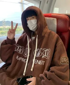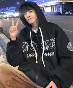 Tên sản phẩm: ÁO KHOÁC NỈ DÂY KÉO THÊU CHỮ IMPRO FORM RỘNG NAM NỮ ĐỀU MẶC ĐƯỢC TP67 – GOLDEN DREAM