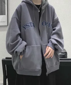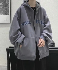 ÁO KHOÁC NỈ DÂY KÉO YSTAOZIS NAM NỮ UNISEX TAY RỘNG SA08 – SAM FREESIZE < 63KG