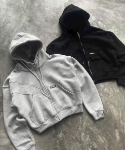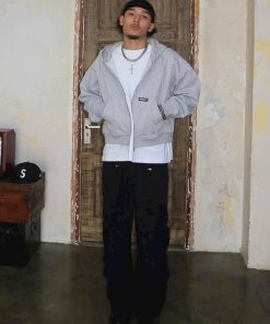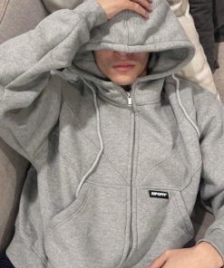 Tên sản phẩm: ÁO KHOÁC NỈ FORM BOXY CHẠY VIỀN CHỮ V TÀY PHỒNG MŨ RỘNG CÓ TÚI TRONG UNISEX NAM NỮ TP409