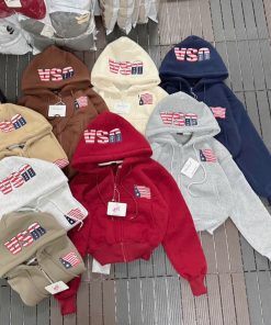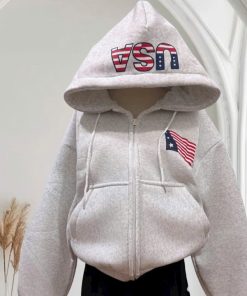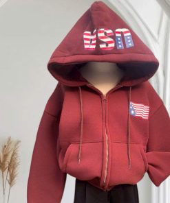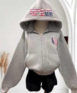 Tên sản phẩm: ÁO KHOÁC NỈ FORM BOXY LỬNG IN CHỮ USA, MŨ 2 LỚP, CÓ TÚI TRONG XINH XẮN CHO CÁC BẠN NỮ TP909 – GOLDEN DREAM