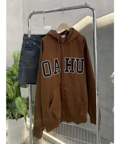 - Tên Sản phẩm: Áo khoác nỉ form rộng mũ 2 lớp chất nỉ chữ OAHU