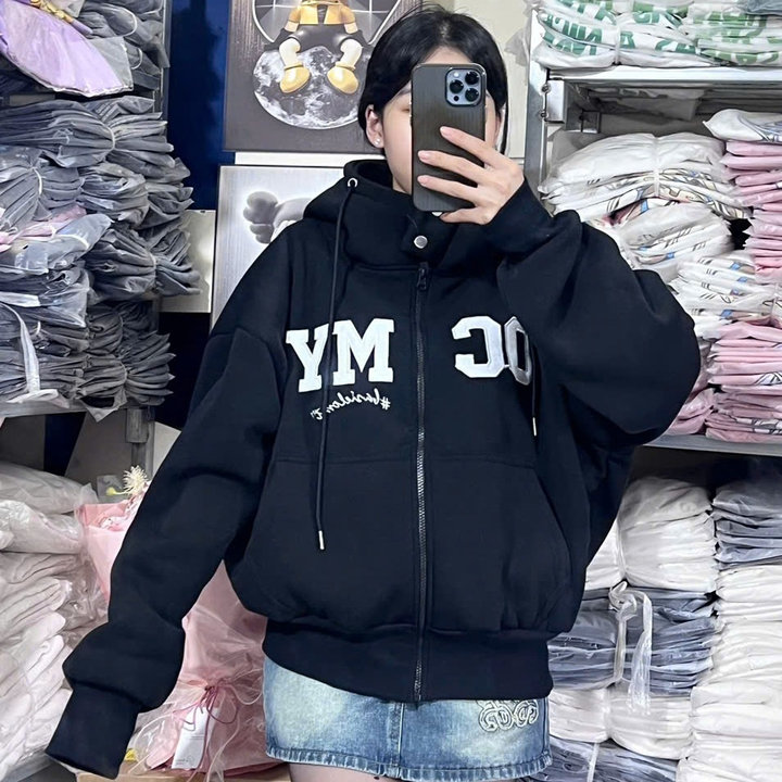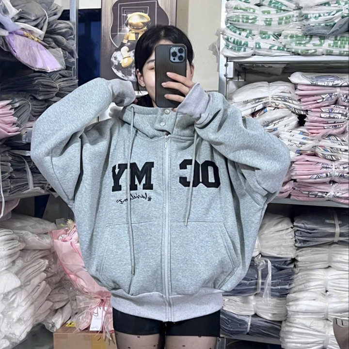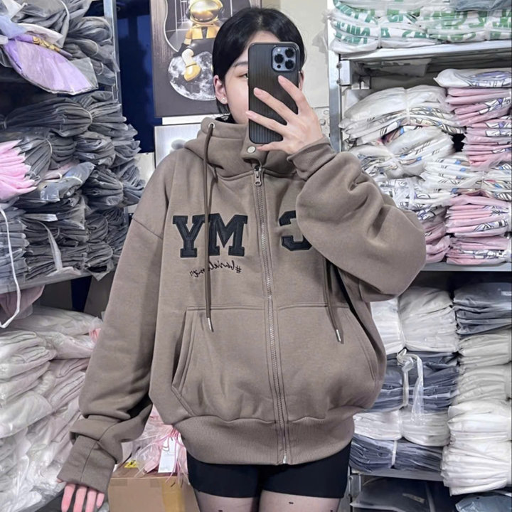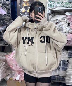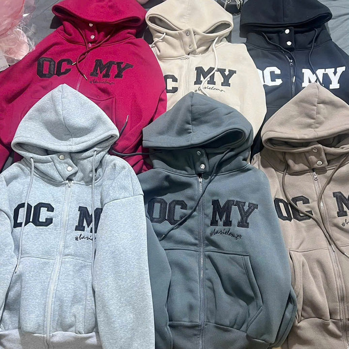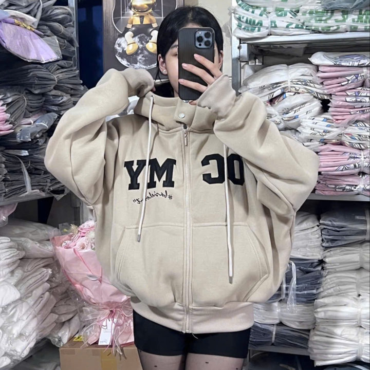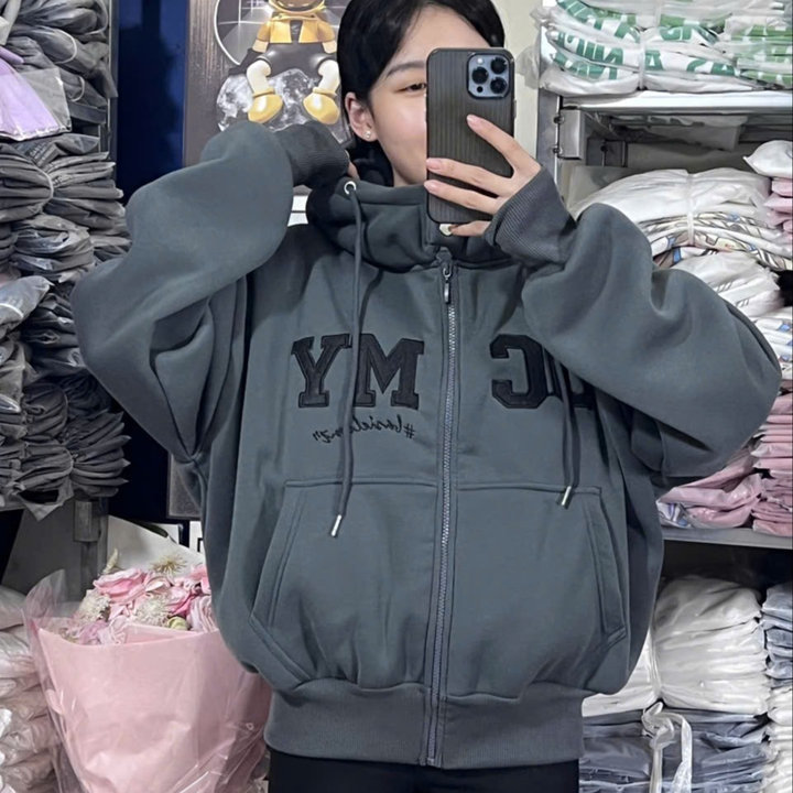 Tên sản phẩm: ÁO KHOÁC NỈ FORM RỘNG UNISEX NAM NỮ THÊU CHỮ OCMY CÓ NÚT BẤM CỔ XỊN VA22 – PHƯƠNG STORE