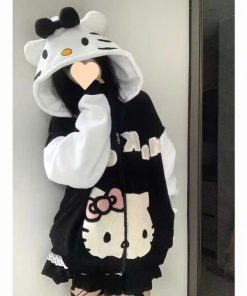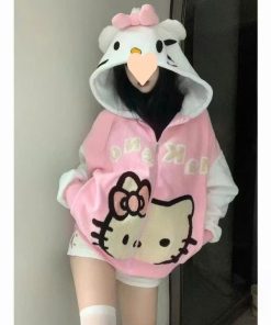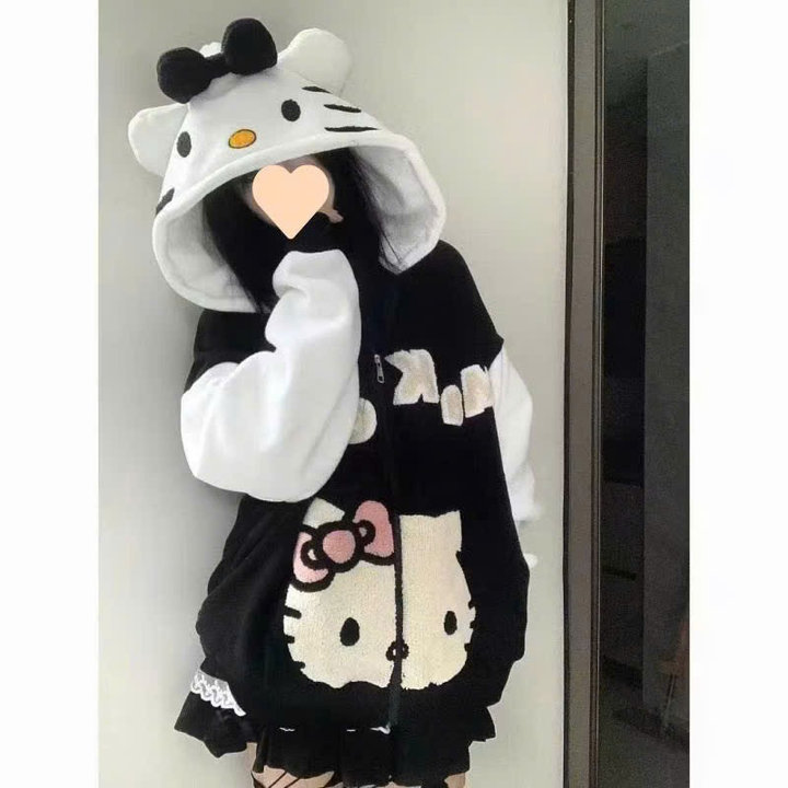 Mặt trước áo có hình mèo thêu nổi siêu đáng yêu, tạo cảm giác mềm mại và sang hơn so với in thông thường. Áo có khóa kéo tiện lợi, dễ mặc – dễ phối – dễ tạo outfit.