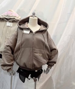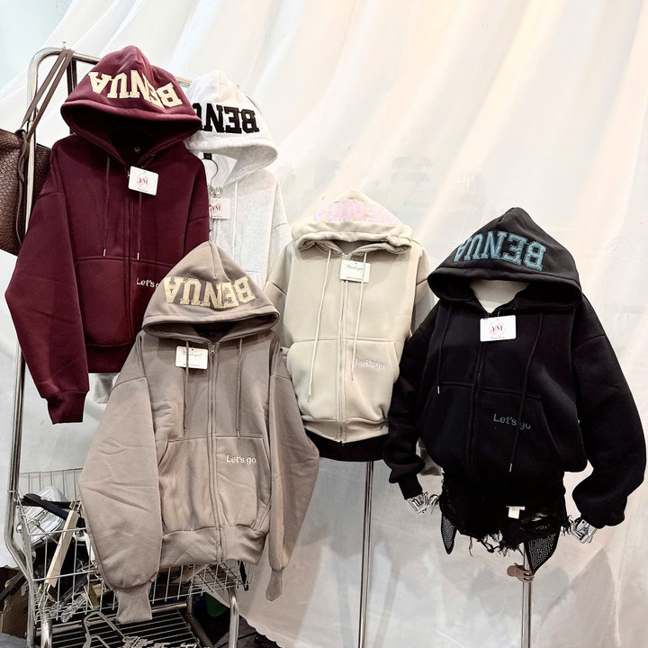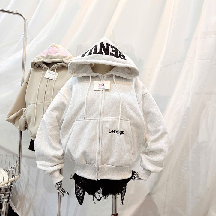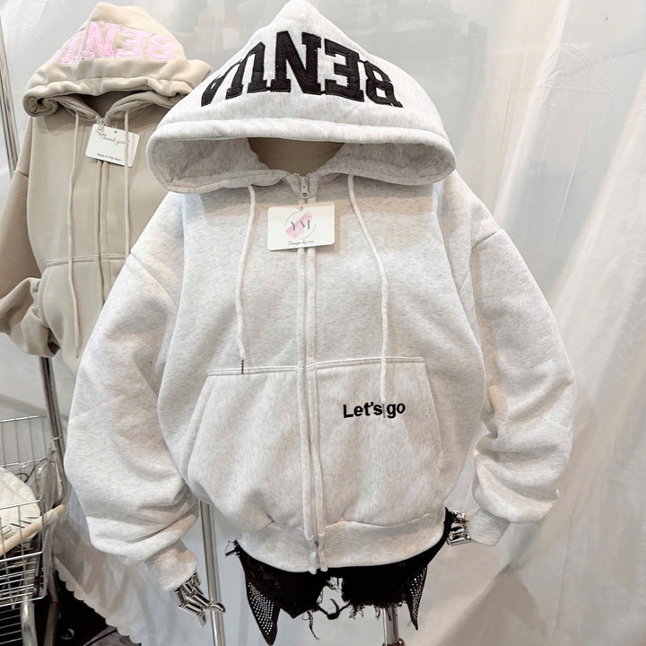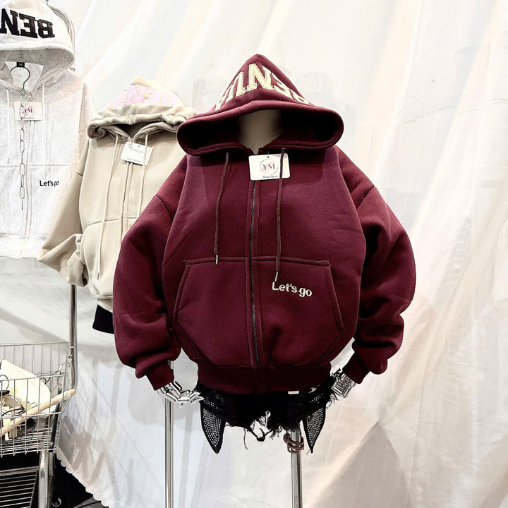 Thiết kế hoodie có mũ trùm đầu, dây rút chắc chắn, phối khóa kéo tiện lợi giúp bạn dễ dàng mặc như áo khoác ngoài hoặc kéo kín khi trời lạnh. Điểm nhấn nổi bật là chữ BENA in/bord lớn trên mũ, kết hợp cùng chi tiết chữ “Let’s go” nhỏ xinh phía trước áo, tạo phong cách streetwear cá tính – trẻ trung – hiện đại.