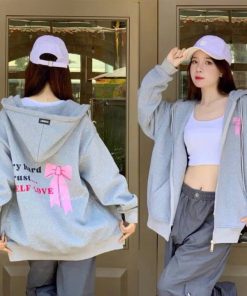 ÁO KHOÁC NỈ IN NƠ HỒNG NAM NỮ UNISEX UG82SW-SAM FREESIZE < 68KG