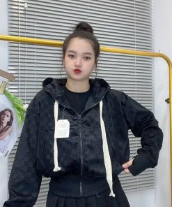 Áo Khoác Nỉ Kiểu Dáng Lửng Nữ Chất Liệu Vải Dập In Họa Tiết Nổi Chữ Siêu Xinh Có Nón Trùm Đầu Cực Xinh Kèm Khóa Zip Áo Đẹp Hàng Hot Trend-HTM FASHION