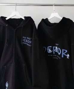 Áo Khoác Nỉ Mũ 2 Lớp Chữ Deror Khóa Kéo Form Rộng Size 40Kg- 75Kg Nam Nữ Mặc Đẹp