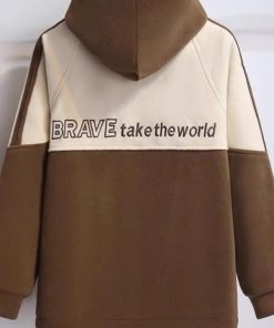 Tên sản phẩm: ÁO KHOÁC NỈ NAM PHỐI MÀU CHỮ THÊU LƯNG BRAVE ĐƠN GIẢN ĐẸP UT388 – GOLDEN DREAM
