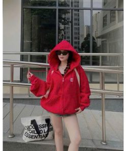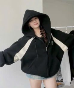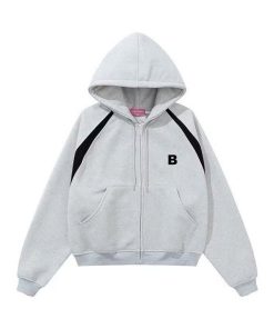 Tên sản phẩm: ÁO KHOÁC NỈ NGOẠI FORM BOXY THÊU CHỮ B PHỐI MÀU TAY PHỒNG RÔNG MŨ 2 LỚP UNISEX NAM NỮ TP555 – GOLDEN DREAM