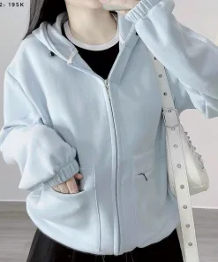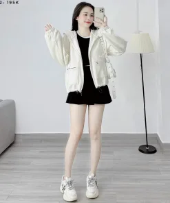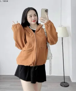 Tên sản phẩm: ÁO KHOÁC NỈ NGOẠI TAY BO DÂY RÚT PHỐI TÚI NGANG SIÊU ĐẸP – KIM
