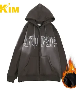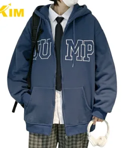 Tên sản phẩm: ÁO KHOÁC NỈ NGOẠI UNISEX DÂY KÉO CÓ NÓN CHẤT DÀY DẶN CHỮ JUMP – KIM