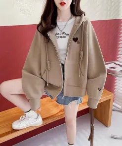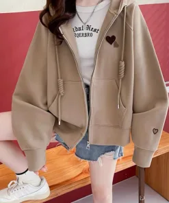 áo Khoác Nỉ Nữ áo Dây Kéo Có Thêu Trái Tim Siêu đẹp Thời Trang – Htm Fashion