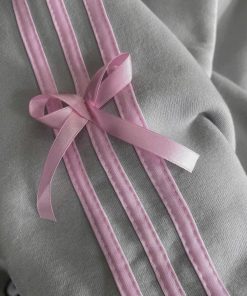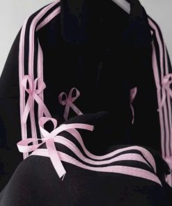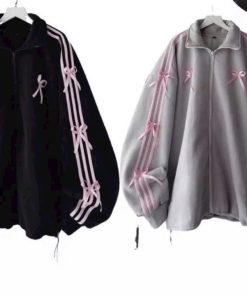 áo Khoác Nỉ Nữ Cổ Bẻ Phối Tay 3 Sọc Gắn Nơ Thiết Kế Khóa Kéo -htm Fashion