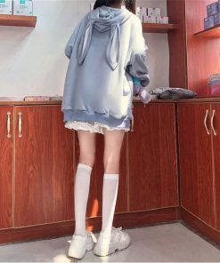 Phần mũ áo có tai thỏ dài mềm mại, giúp bạn dễ dàng hóa thân thành cô nàng "kẹo ngọt" cực kỳ xinh xắn. Form áo rộng phù hợp với nhiều dáng người, giúp che khuyết điểm một cách hoàn hảo. Đây chắc chắn là item không thể thiếu trong tủ đồ của các cô gái yêu thích phong cách Ulzzang Hàn Quốc hoặc Lolita Nhật Bản.