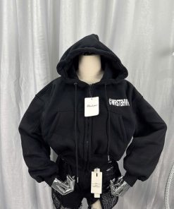 Mẫu áo khoác hoodie nữ form lửng được thiết kế theo phong cách streetwear hiện đại, nổi bật với dòng chữ in WRSTBHVR ở mặt trước và mặt sau – tạo điểm nhấn ấn tượng, chất chơi và cá tính. Form croptop rộng rãi, bo gấu nhẹ giúp hack dáng, tôn eo cực chuẩn.