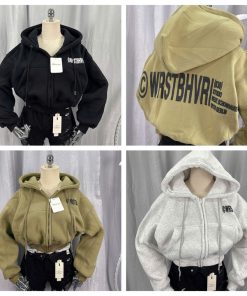 Áo khoác hoodie nỉ bông nữ form croptop in chữ WRSTBHVR – Cá tính, chuẩn streetwear, giữ ấm cực tốt