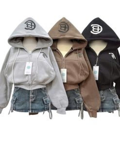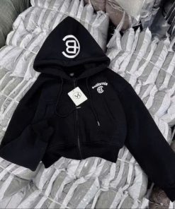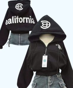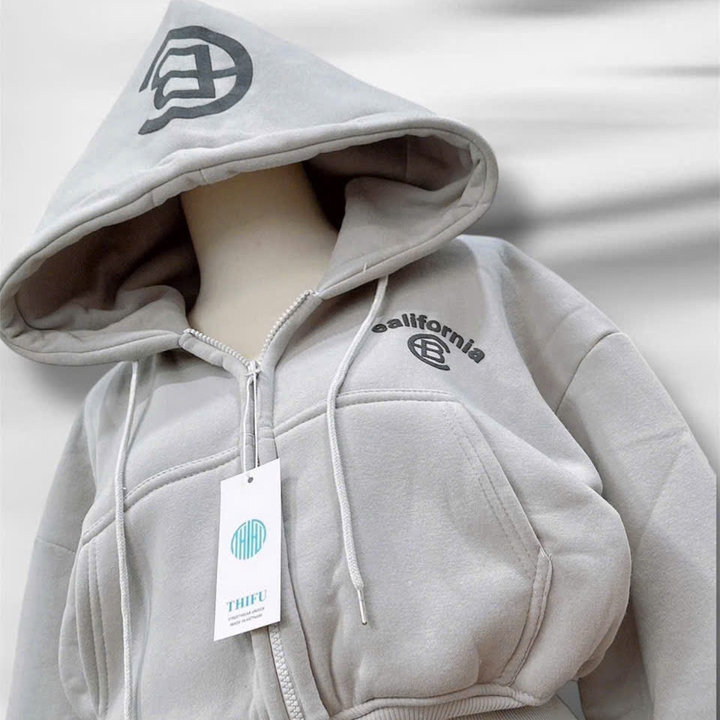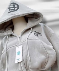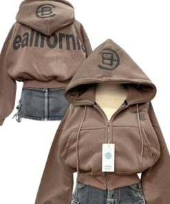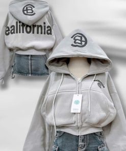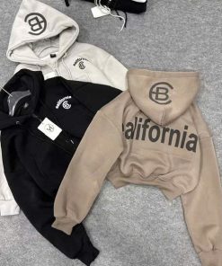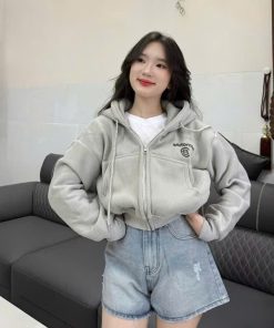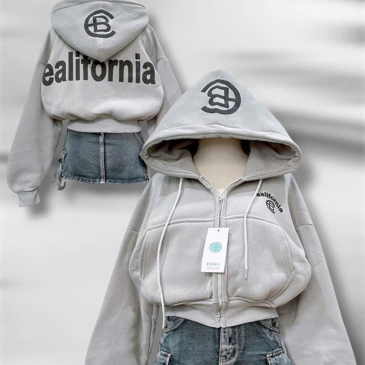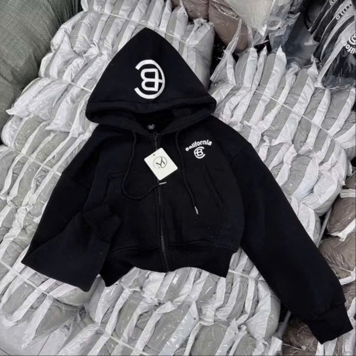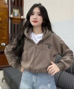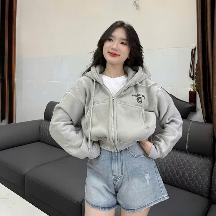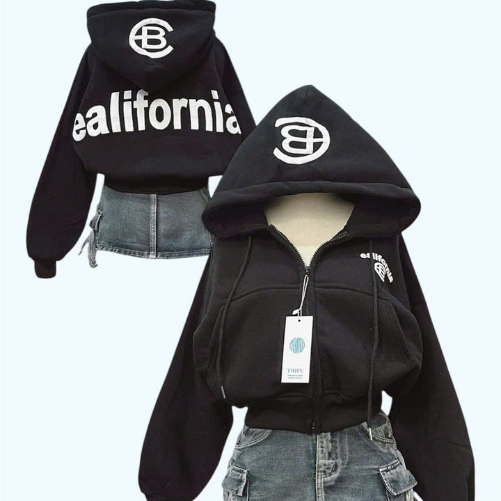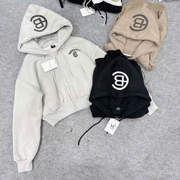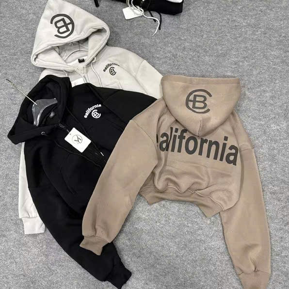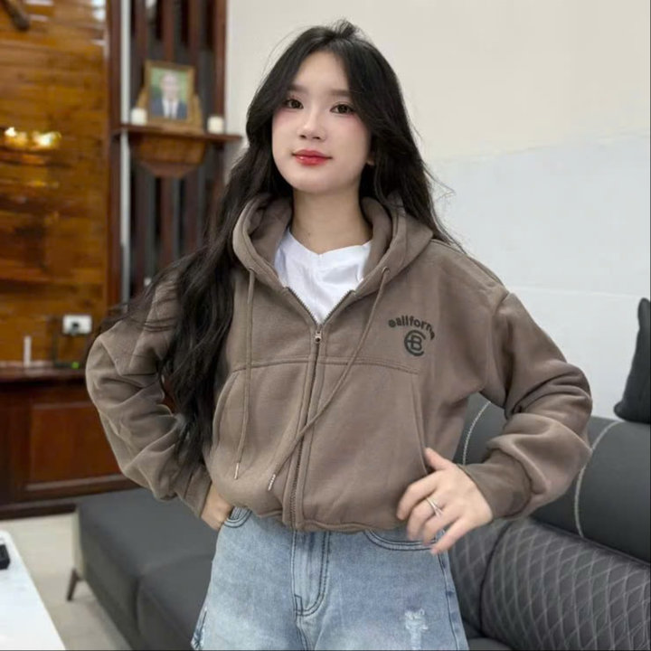Tên sản phẩm: ÁO KHOÁC NỈ NỮ FORM LỬNG IN CHỮ CB CÓ TÚI TRONG TAY XỎ NGÓN TP41 – GOLDEN DREAM