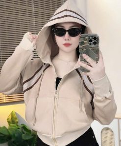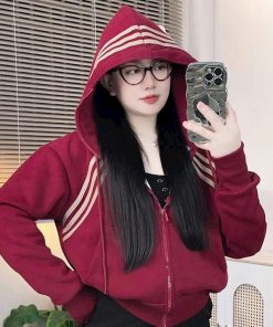 Tên sản phẩm: ÁO KHOÁC NỈ NỮ FORM LỬNG PHỐI 3 SỌC VAI MŨ RỘNG CHỐNG NẮNG TỐT UT84