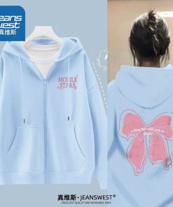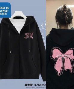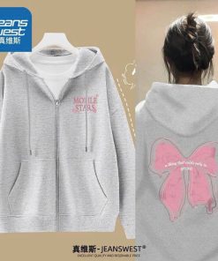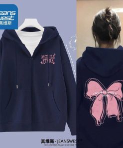Tên sản phẩm: ÁO KHOÁC NỈ NỮ FORM RỘNG IN NỔI NƠ LỚN MOBILEE XINH XẮN MŨ RỘNG TAY PHỒNG TP83 – PHƯƠNG STORE