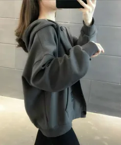 Áo Khoác Nỉ Nữ ở Sau Thêu Số 63 Siêu Nét Chất Vải Dày Mịn Form Rộng Kèm Nón Trùm Đầu Tay Bo Chun Xinh Hàng Hot Trend-HTM FASHION