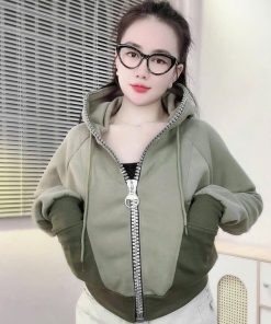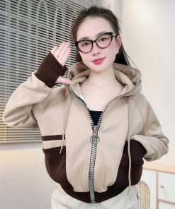 Tên sản phẩm: ÁO KHOÁC NỈ NỮ PHỐI KHOÁ KÉO TO MŨ RỘNG CÙNG MÀU CÓ TÚI TRONG UT41 – GOLDEN DREAM