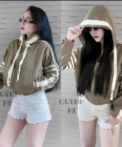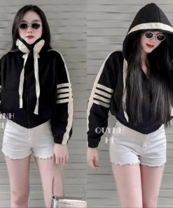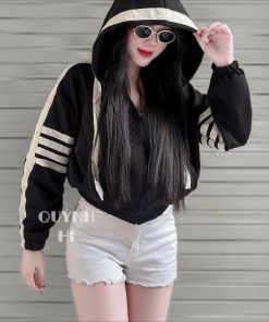 áo Khoác Nỉ Nữ Phối Tay 2 Sọc Ngang Có Nón Dày 2 Lớp -htm Fashion