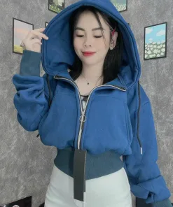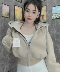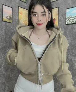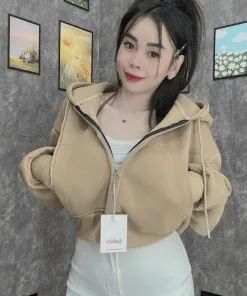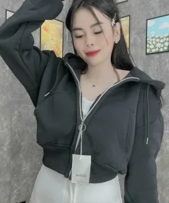 Áo Khoác Nỉ Nữ Với Chất Liệu Vải Nỉ Dệt Dáng Form CropTop Lửng Cá Tính Có Nón Trùm Đầu Rộng Đẹp Kèm Dây Rút Áo Đẹp Hàng Hot Trend-HTM FASHION