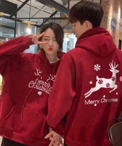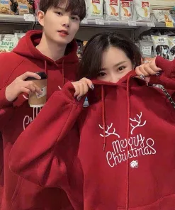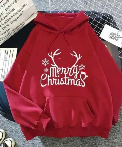 ÁO KHOÁC NỈ PE IN HỌA TIẾT GIÁNG SINH (NOEL) MERRY CHRISTMAS CỔ CHUI CÓ NÓN – HTM FASHION