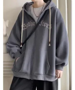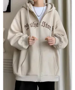 Kiểu dáng thời trang rộng rãi thoải mái, in chữ hoạt hình sau lưng áo tạo điểm nhấn nổi bật cho áo khoác.