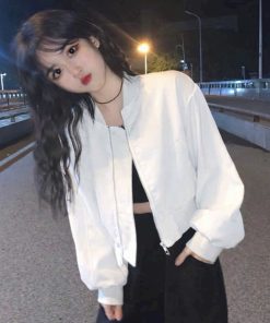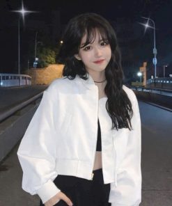 Sản phẩm nổi bật với kiểu áo khoác bomber hiện đại, phần tay áo bo nhẹ tạo độ phồng thời trang, mang đến vẻ ngoài trẻ trung, năng động. Khóa kéo tiện lợi giúp dễ dàng mặc vào hoặc phối layer với áo croptop, áo hai dây bên trong.