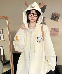 Tên sản phẩm: ÁO KHOÁC NỈ UNISEX NAM NỮ IN HÌNH CỪU TRẮNG MŨ CÓ SỪNG SIÊU XINH TP80 – GOLDEN DREAM