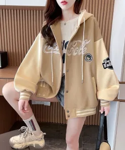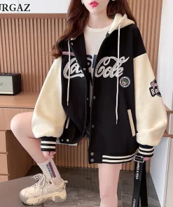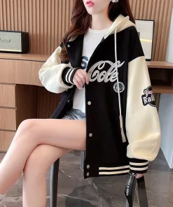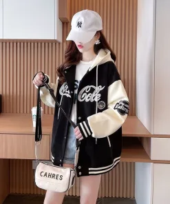 Tên sản phẩm: ÁO KHOÁC NỮ BÓNG CHÀY VẢI NỈ DÀY DẶN PHỐI MŨ RỘNG THÊU CHỮ COCA COLE UNISEX NAM NỮ TP66 – GOLDEN DREAM