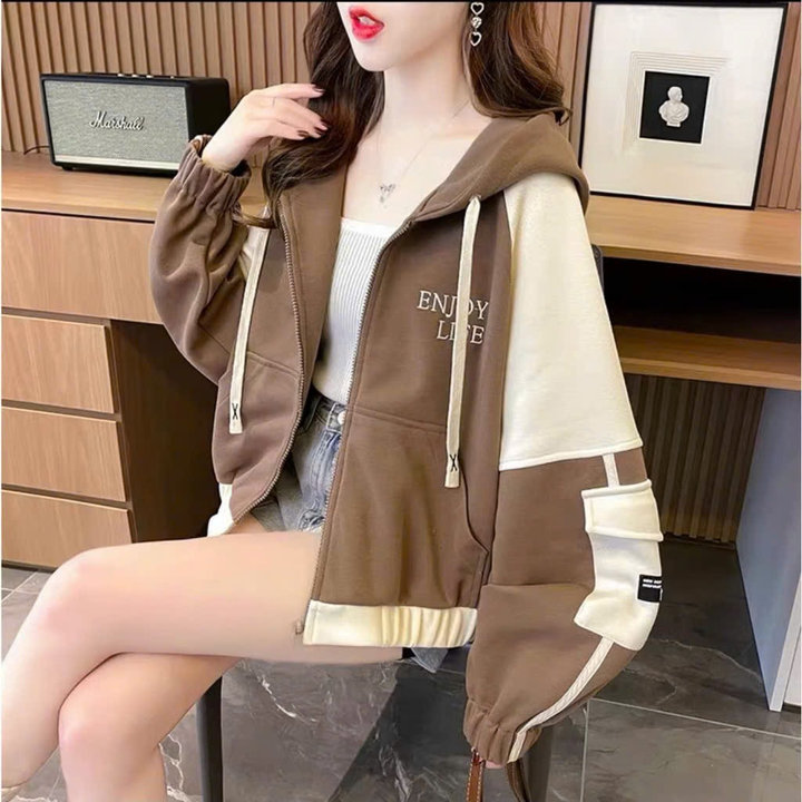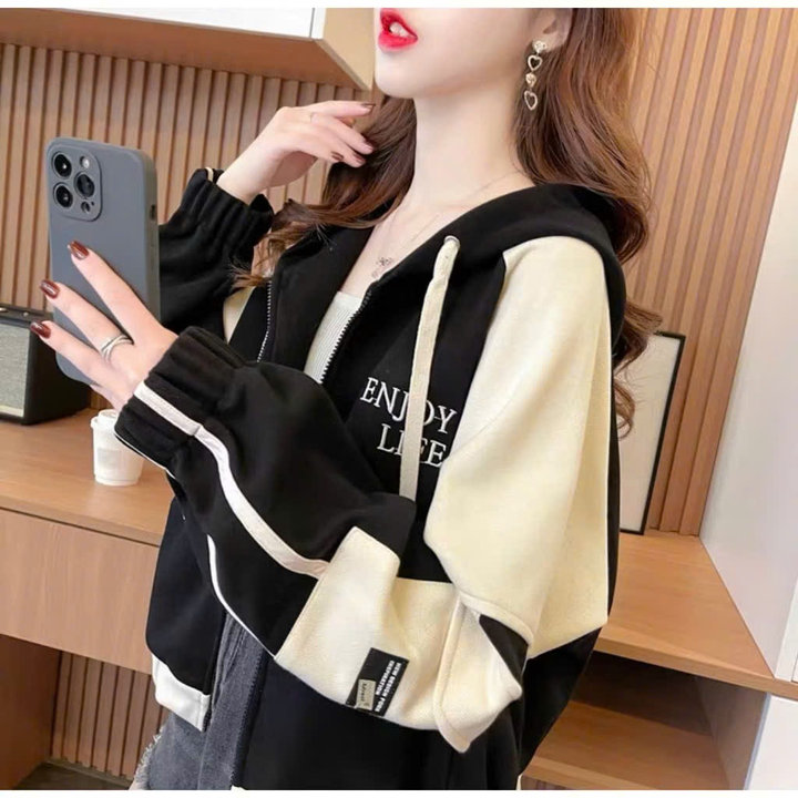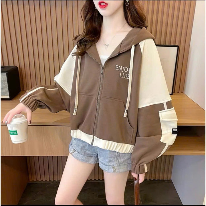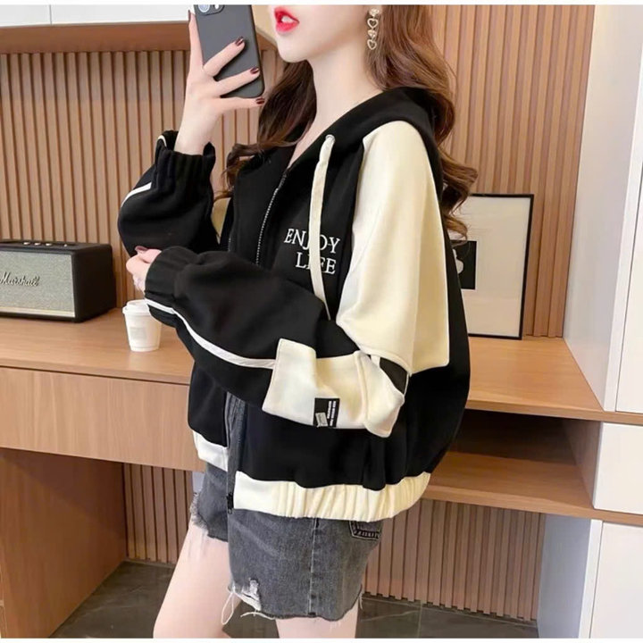 Áo khoác nữ hoodie phối màu ENJOY LIFE là mẫu áo khoác thời trang đang được rất nhiều bạn trẻ yêu thích nhờ thiết kế trẻ trung, năng động và cực kỳ dễ phối đồ. Với phong cách street style Hàn Quốc, chiếc áo mang lại vẻ ngoài cá tính nhưng vẫn giữ được sự nữ tính và hiện đại.