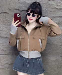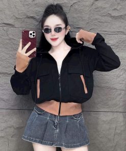 Tên sản phẩm: ÁO KHOÁC NỮ FORM LỬNG VẢI THUN PC MỊN PHỐI TÚI HỘP MŨ RỘNG SIÊU XINH UT44 – GOLDEN DREAM