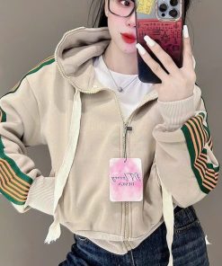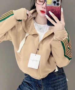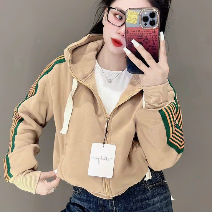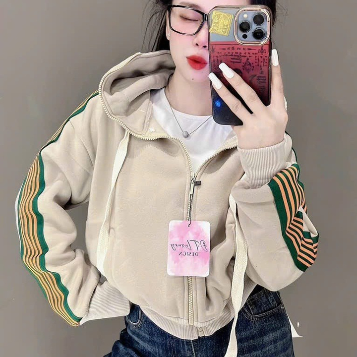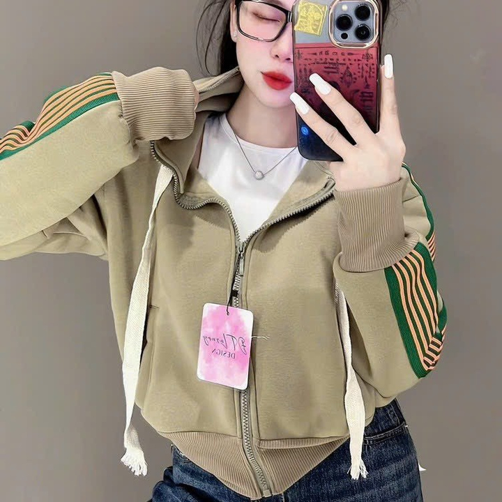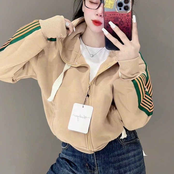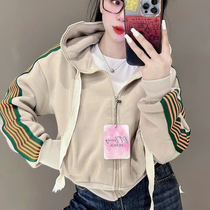 Áo Khoác Nữ Kiểu Lửng Croptop Dáng Tay Phồng Siêu Đẹp Chất Vải Dày Dặn Có Sọc Cánh Tay Áo Đẹp Hàng Hot Trend-HTM FASHION
