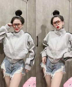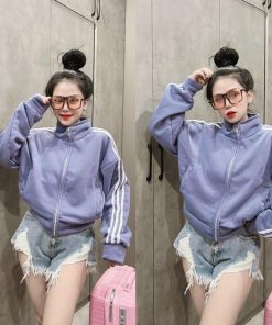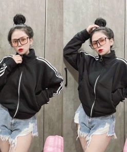 Áo Khoác Nữ Lửng Craptop Chất Vải Nỉ Ngoại Có Cánh Cổ Tay Áo 2 Bên Cánh Tay Chạy Sọc Siêu Nét Hàng Hot Trend-HTM FASHION