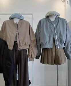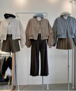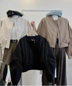 Áo Khoác Nữ Phối Dáng Lửng Nữ Vải Dày Thoáng Mát Cổ Chữ V Có Khóa Kéo Zip Siêu Dễ Thương Áo Đẹp Hàng Hot Trend-HTM FASHION