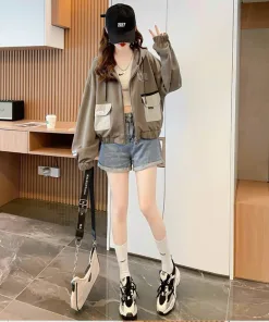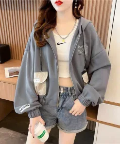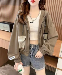 Áo Khoác Nữ Phối Kiểu Lửng Lửng Croptop Có Nón Chất Liệu Vải Bao Tốt LoGo Thêu Túi Hộp Siêu Ngầu Hàng Hot Trend-HTM FASHION