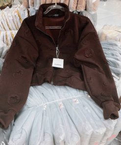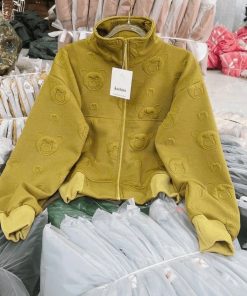 Áo Khoác Nữ Phối Với Chất Liệu Vải Xốp Áo Có In Hình Đầu Sói Phối Hợp Với Khóa Kéo Áo Đẹp Hàng Hot Trend-HTM FASHION